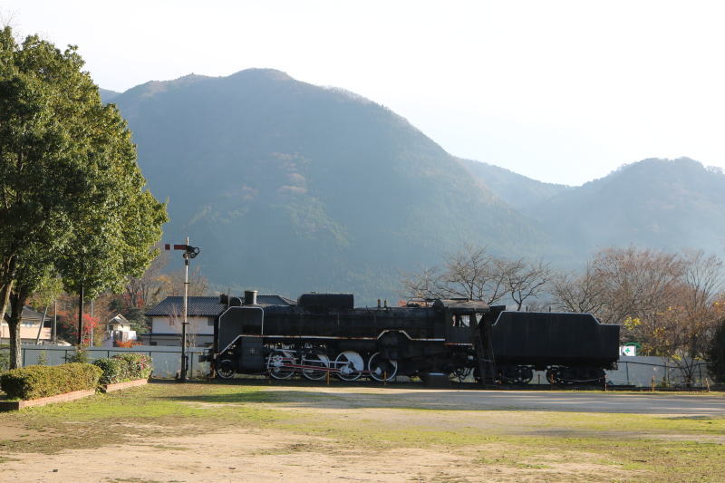 湯の坪街道脇の児童公園には蒸気機関車が設置
