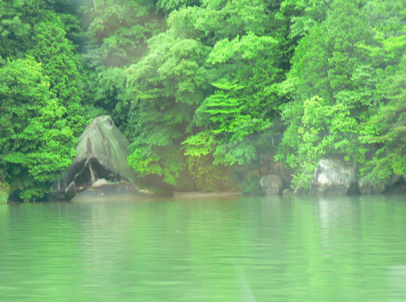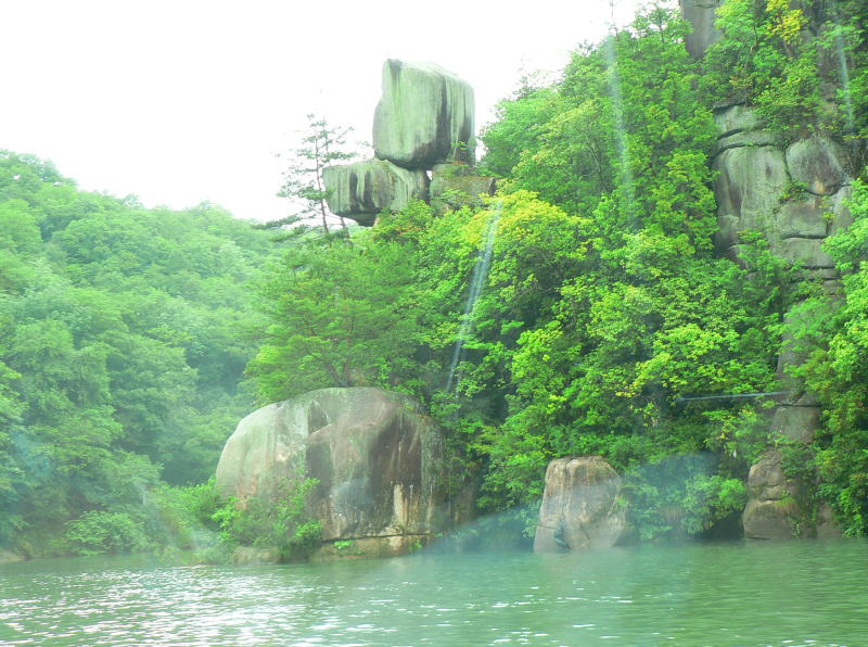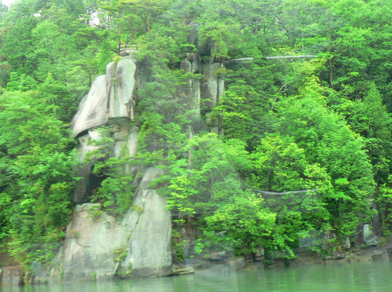恵那峡の両岸には奇岩や怪石が奇妙な景観を形成している