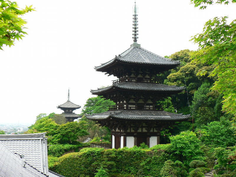 庭園の見晴台からは国宝の東塔と西塔を同時に見ることができる