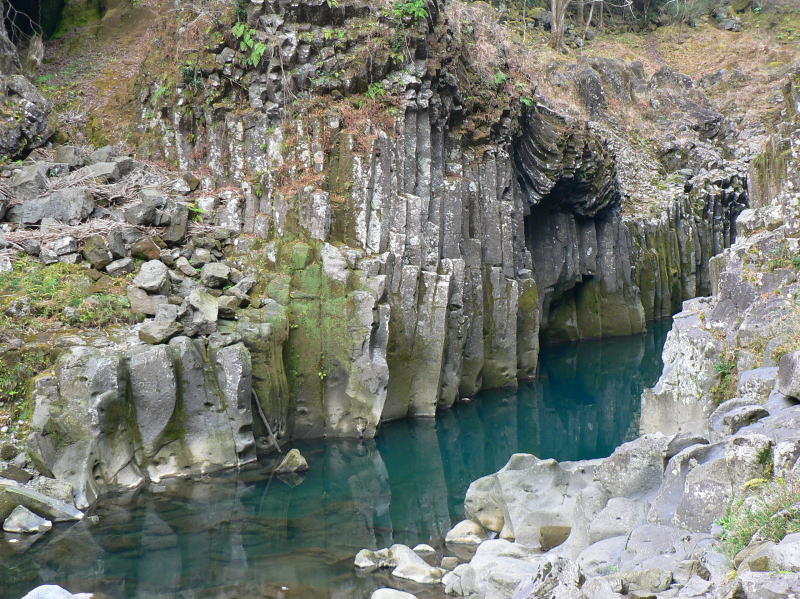 高千穂峡には屏風岩や亀甲岩など自然の造形美が見られる |