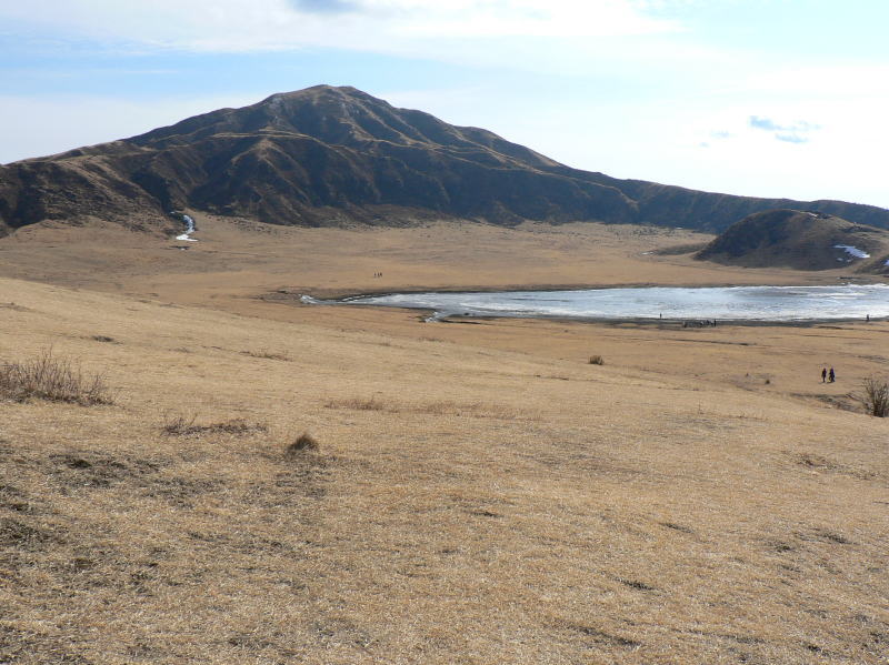 阿蘇草千里ヶ浜は鳥帽子岳中腹に広がる草原で自然池もある |