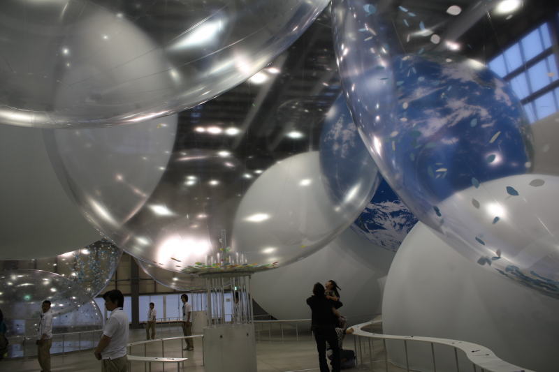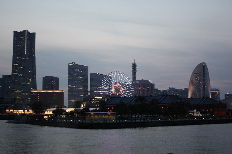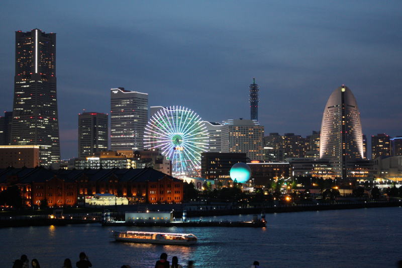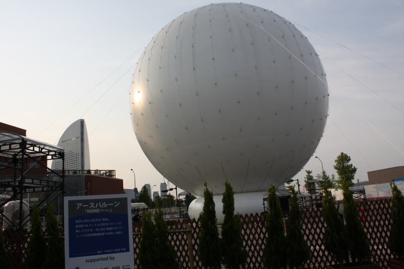 夜になると横浜港の夜空に浮かぶ巨大な地球