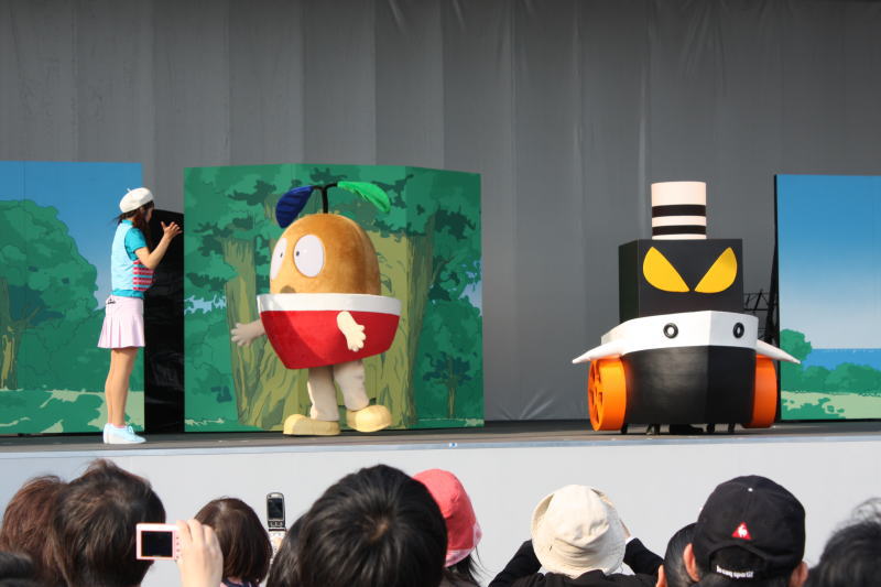 マスコットキャラクター「たねまる」と「ペリーテイトくん」が開港・開国博の紹介