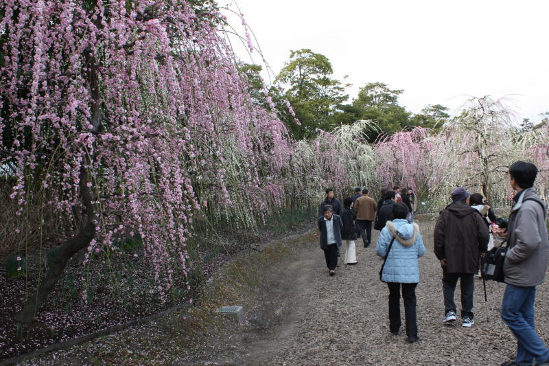 梅苑のしだれ梅は満開の峠を過ぎていましたが