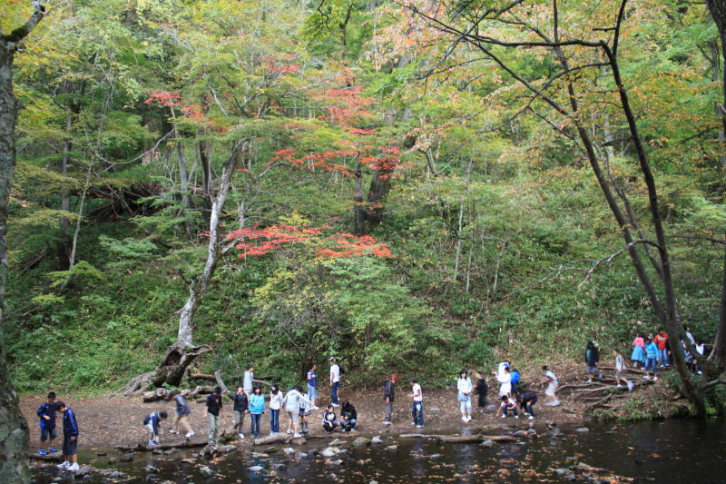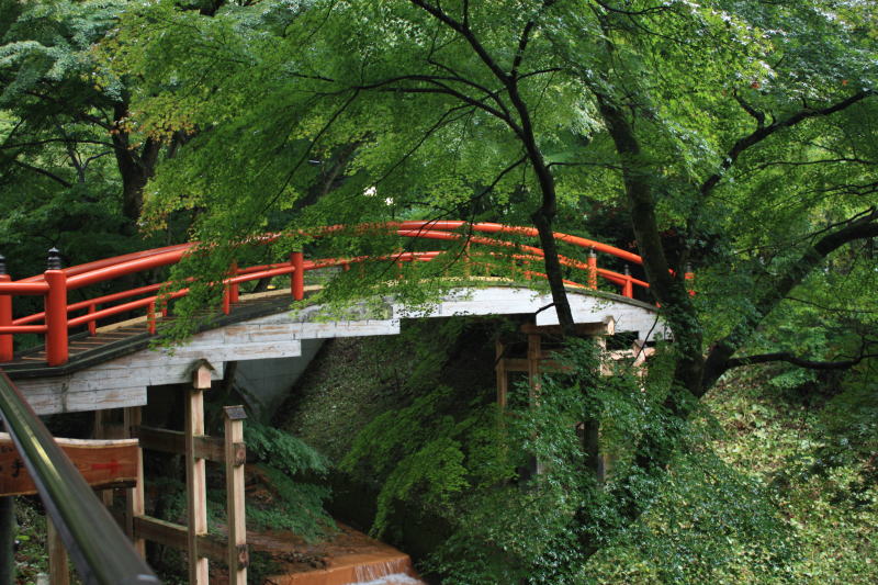 神社から奥に行くと紅葉の名所「河鹿橋」がある