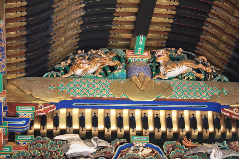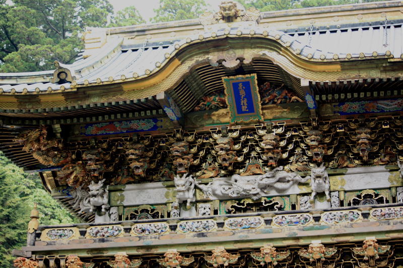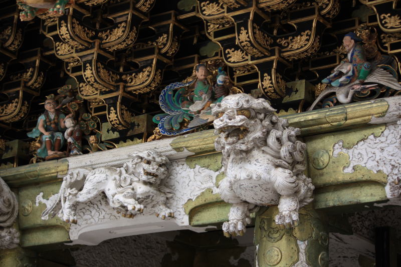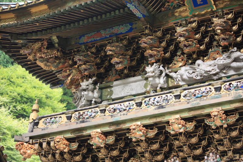 東照大権現の額の下には口の開け方が皆違う龍の彫刻
