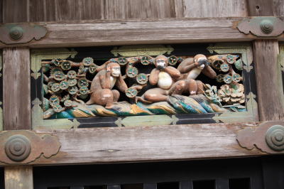 「見ザル、言ワザル、聞カザル」三猿の彫刻で有名な神厩舎
