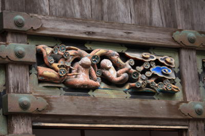 陽明門の柱の文様は猿の顔をモチーフに表現されているが