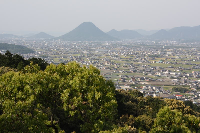 御本宮の展望台からの眺め、中央の山が讃岐富士