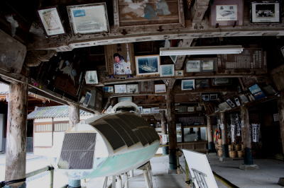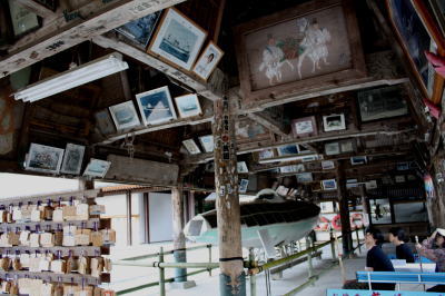 堂内に奉納された航海の安全を祈願した多くの絵馬