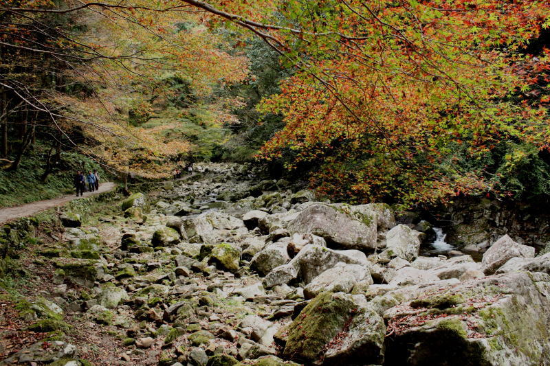 駐車場から赤目四十八滝に続く道も紅葉が始まっている