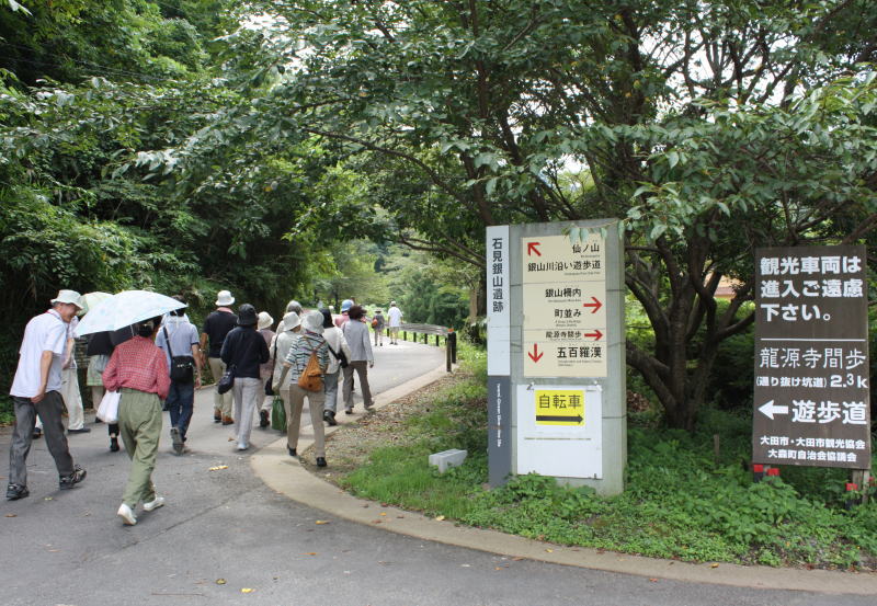 ここから間歩(坑道)まで約2・3kmを徒歩で行く