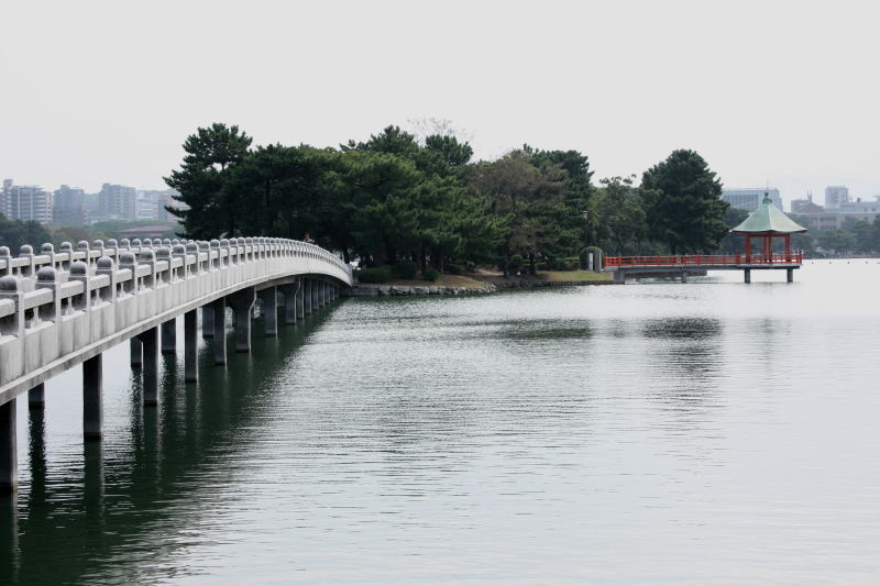 心字池に架かる過去・現在・未来を渡る太鼓橋