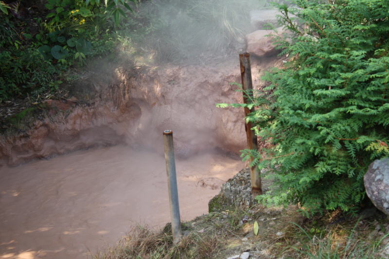 粘土質の熱泥が坊主頭のような大小の球状を成して沸騰