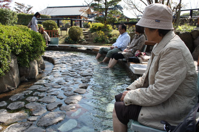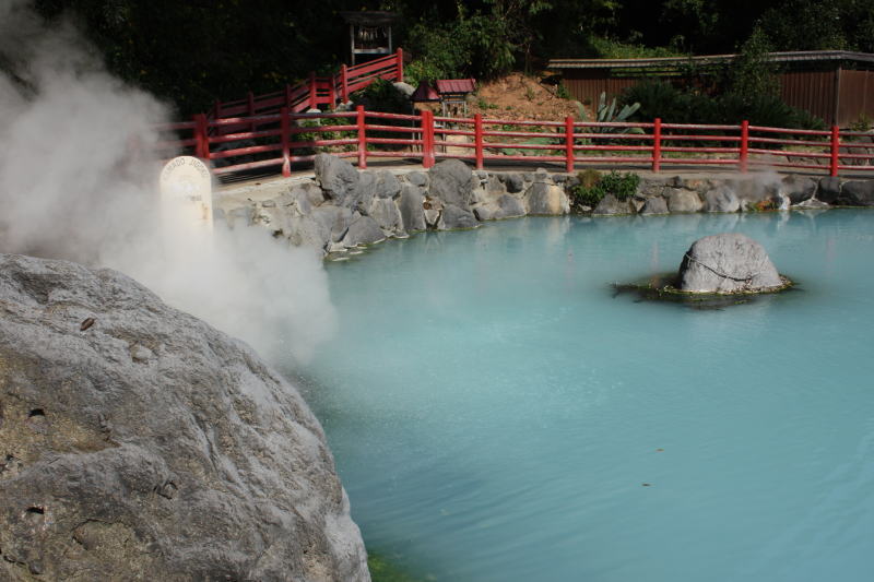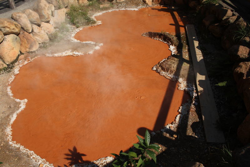 血の池地獄の足湯は肌がすべすべになるほど泉質がいい