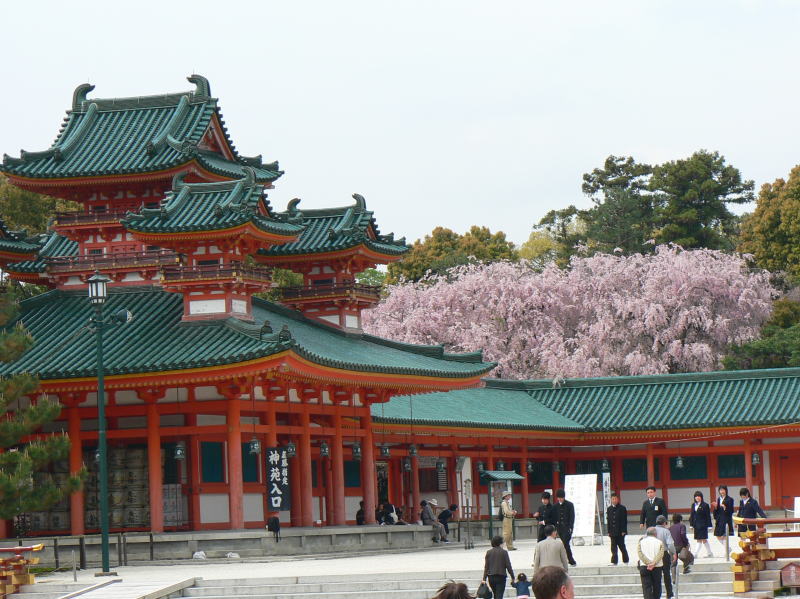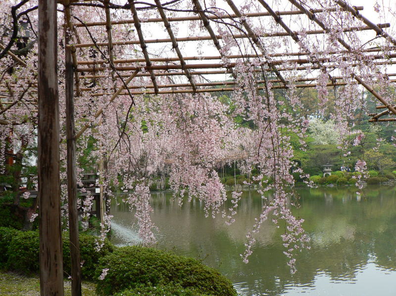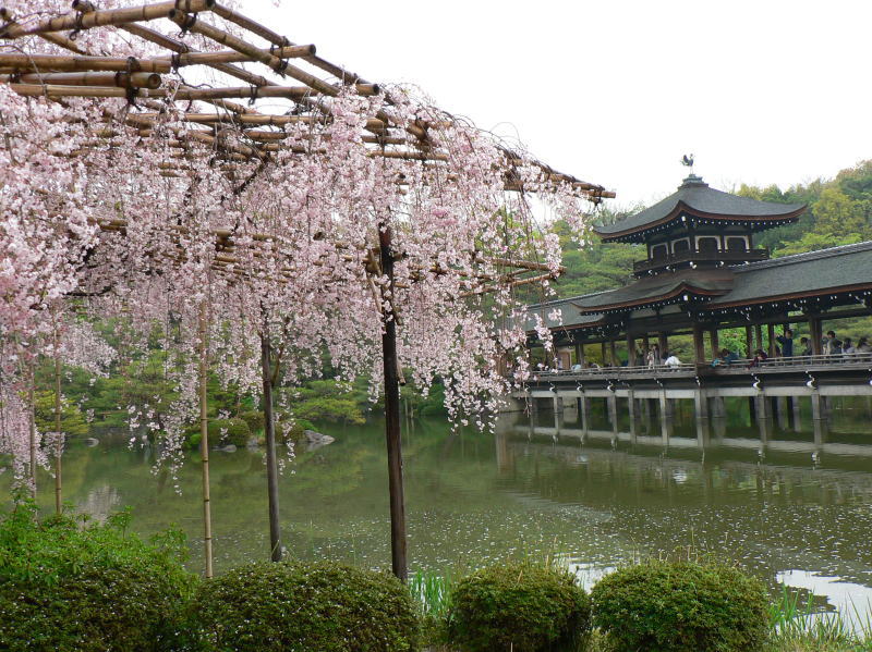 平安神宮の神苑を華麗に彩る有名な「紅しだれ桜」を