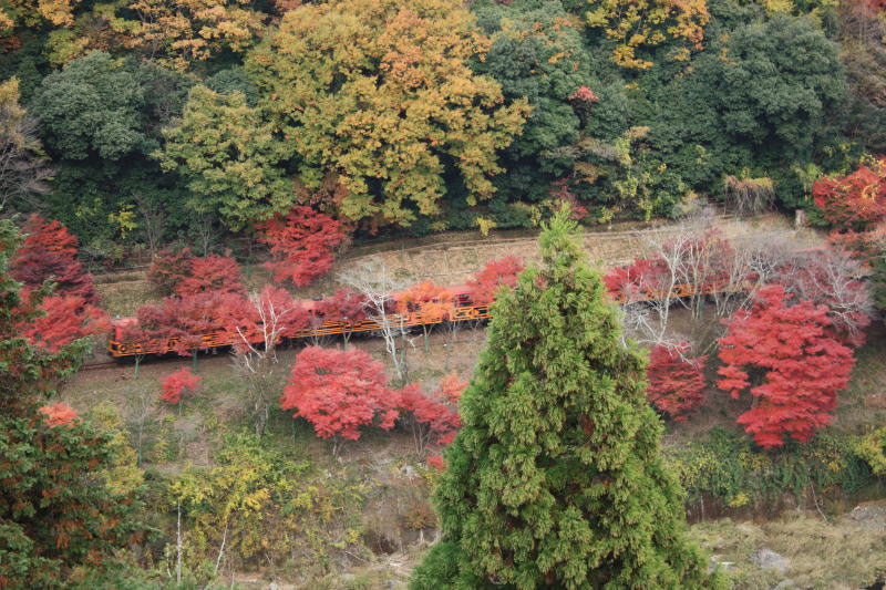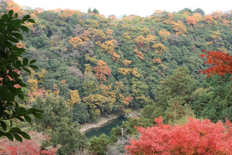 (保津川)の遊歩道から紅葉を眺めながら嵐山の中腹