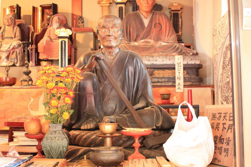 大堰川(保津川)の開削工事を行い、晩年隠棲した角倉了以像
