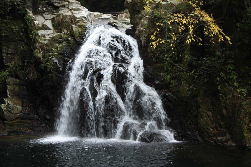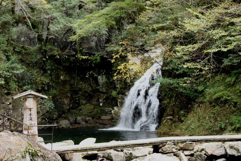高さ15mから岩を伝って千手のように落水する赤目五瀑の一つ「千手滝」
