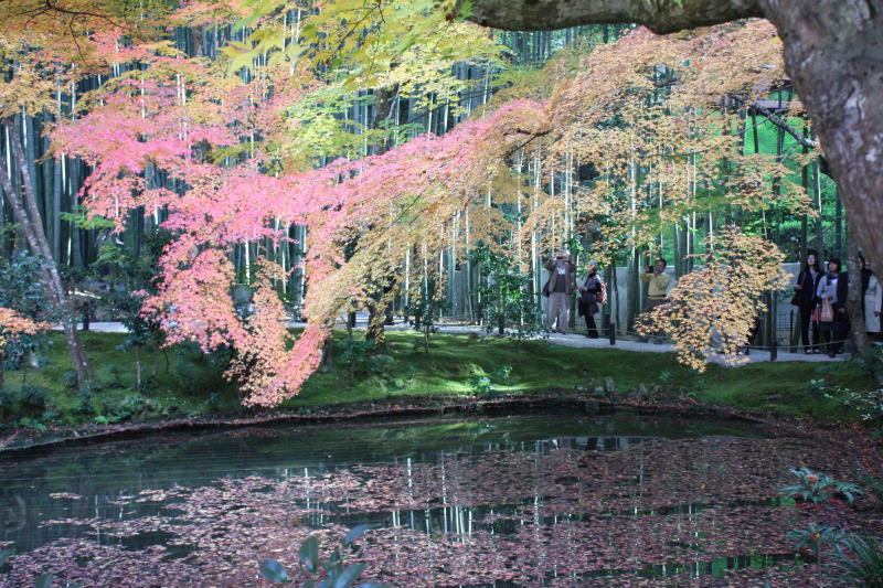 竹林をバックにした紅葉