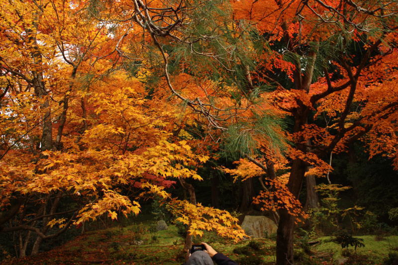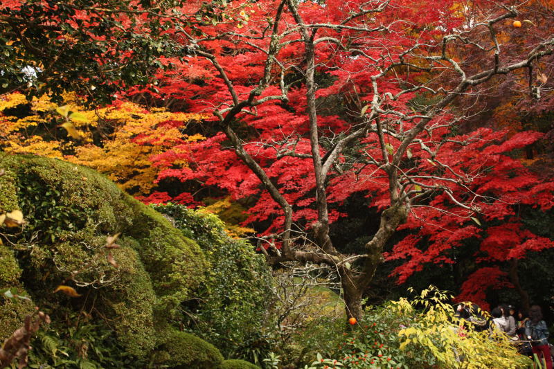 庭園では色とりどりの紅葉が見頃である