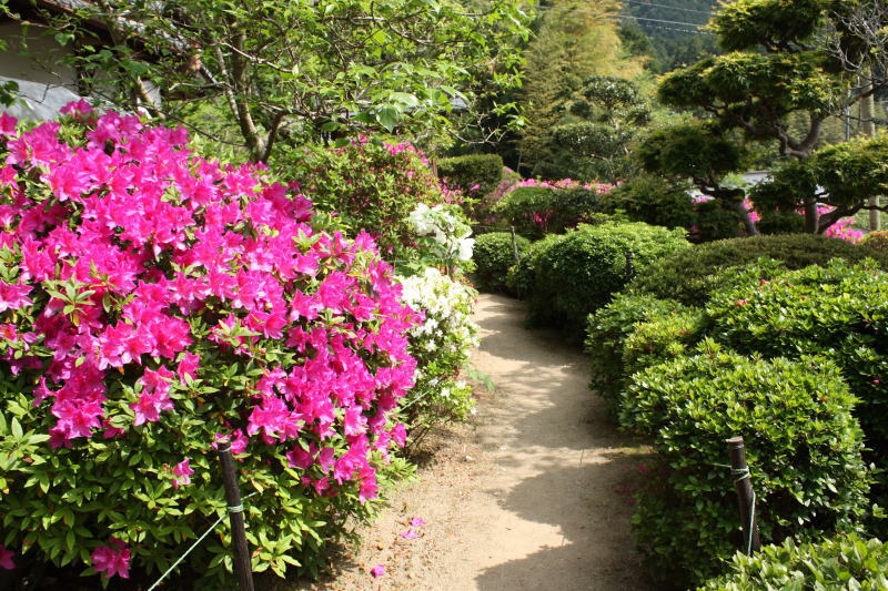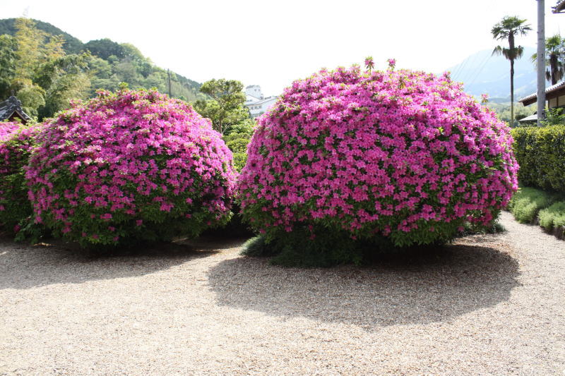 有名です。山門までの緩い坂道の両側にツツジの刈込み