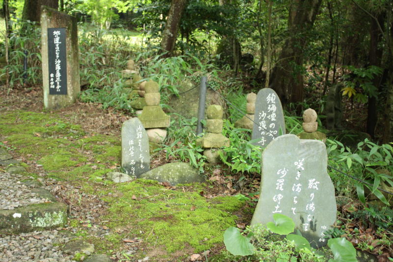 本堂横から裏山へ巡る散策路には寺にゆかりの句碑や歌碑が点在する