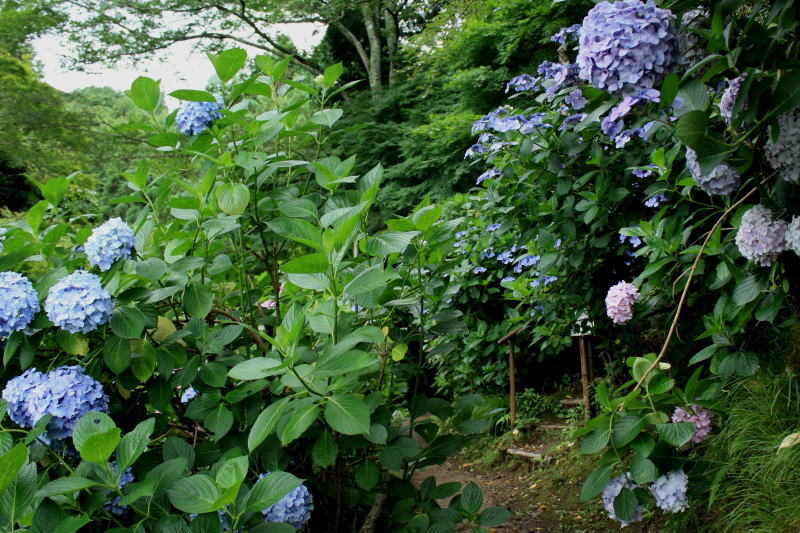 庫裡より山の斜面を通り本堂に出るアジサイの散策道