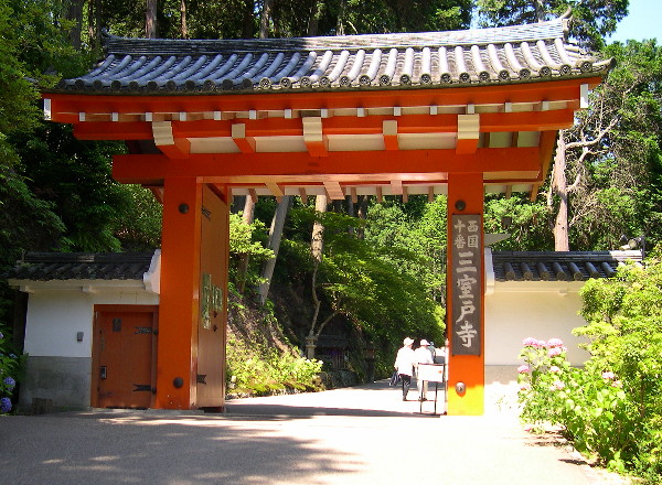 三室戸寺の山門をくぐると満開のアジサイが迎えてくれる