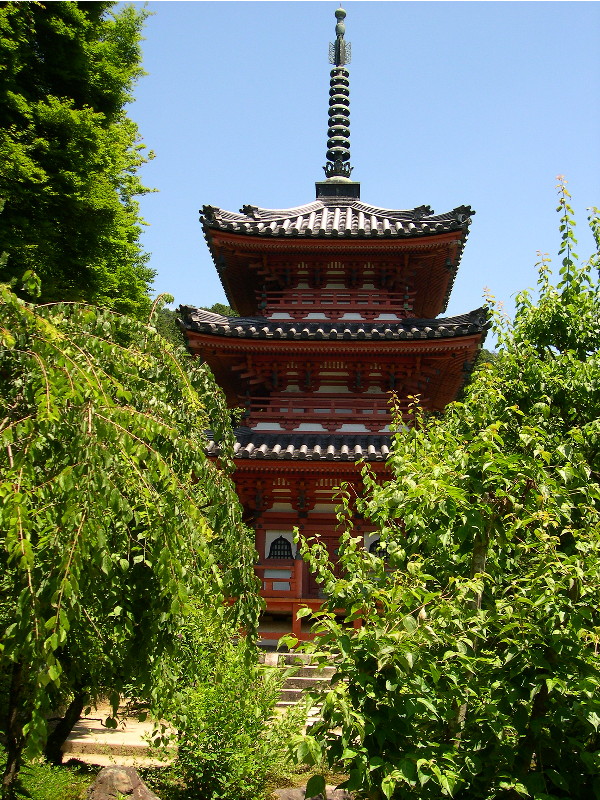 新緑に取り囲まれた三重塔