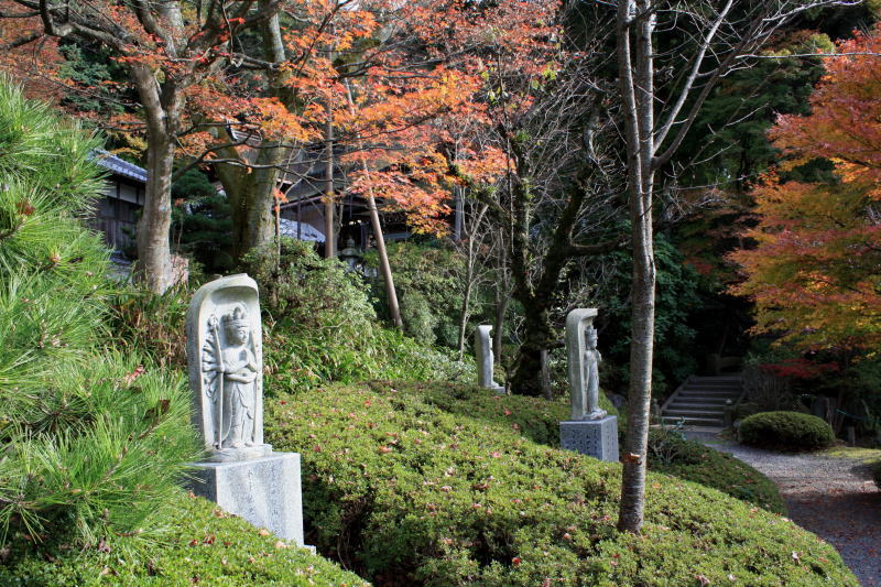 岩間寺の境内には西国三十三所の観音像が祀られている |