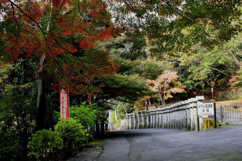 岩間寺(正式には正法寺)に続く参道の周辺も紅葉している