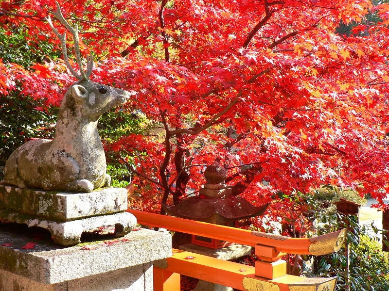 大原野神社には狛犬ならぬ神のお使いである神鹿の「狛鹿」が置かれている