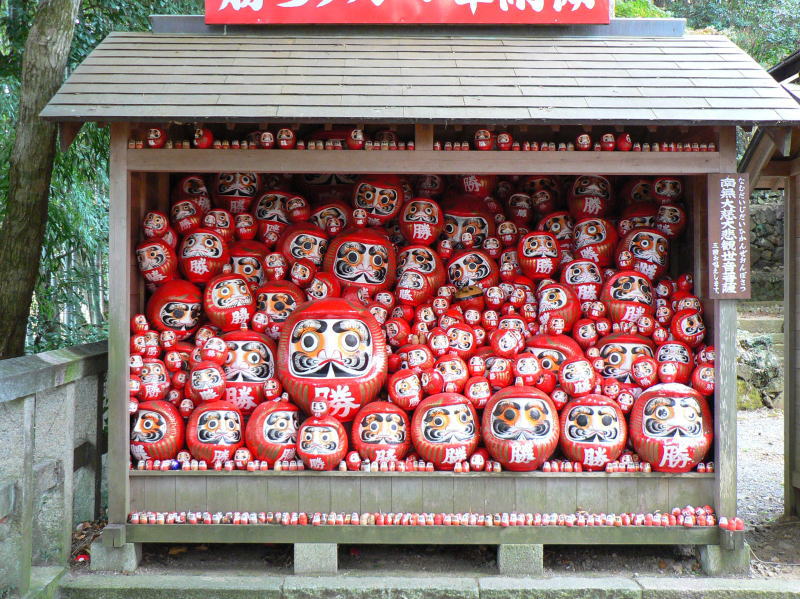 さまざまな思いを込めた勝運成就した奉納ダルマ |