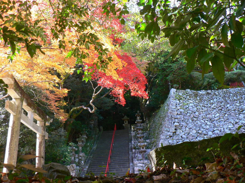 滝道沿いにある瀧安寺財弁天入り口の紅葉