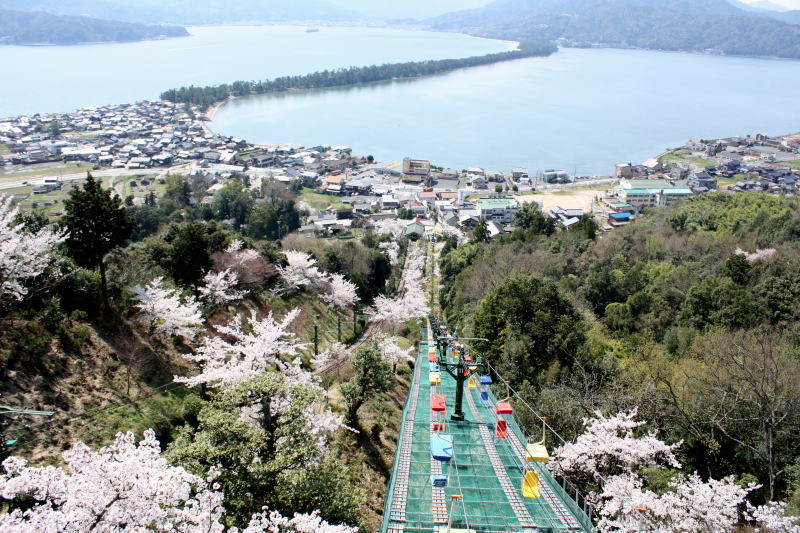 ![]() 傘松公園から成相寺まで登山バスで登る道中の桜 |