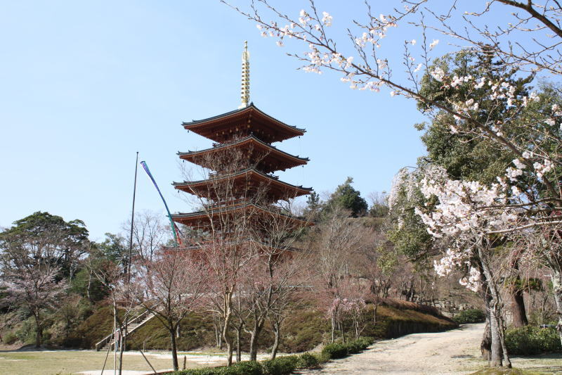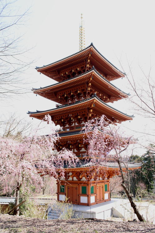 ![]() 平成10年に鎌倉時代の形式で復元された五重塔 |