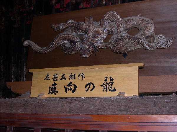 本堂の中に飾られている左甚五郎作の珍しい正面を向いた龍