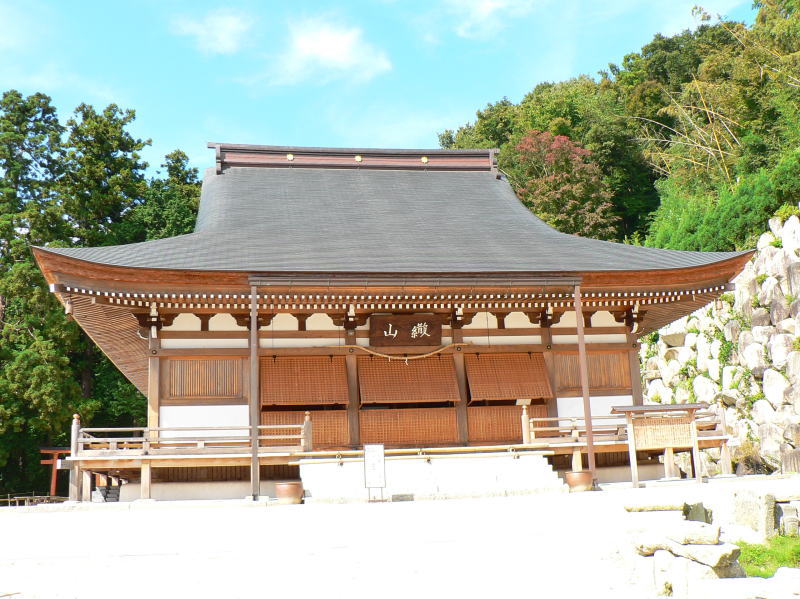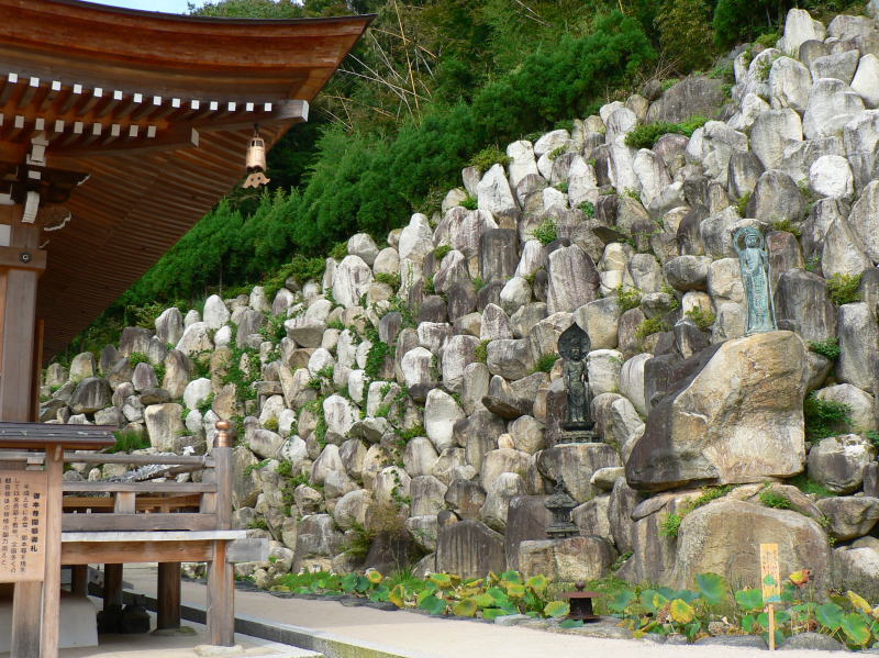 本堂横には結界を示す巨岩の壁が作られている