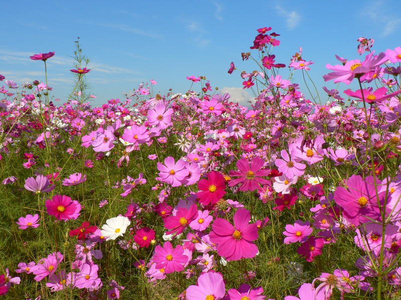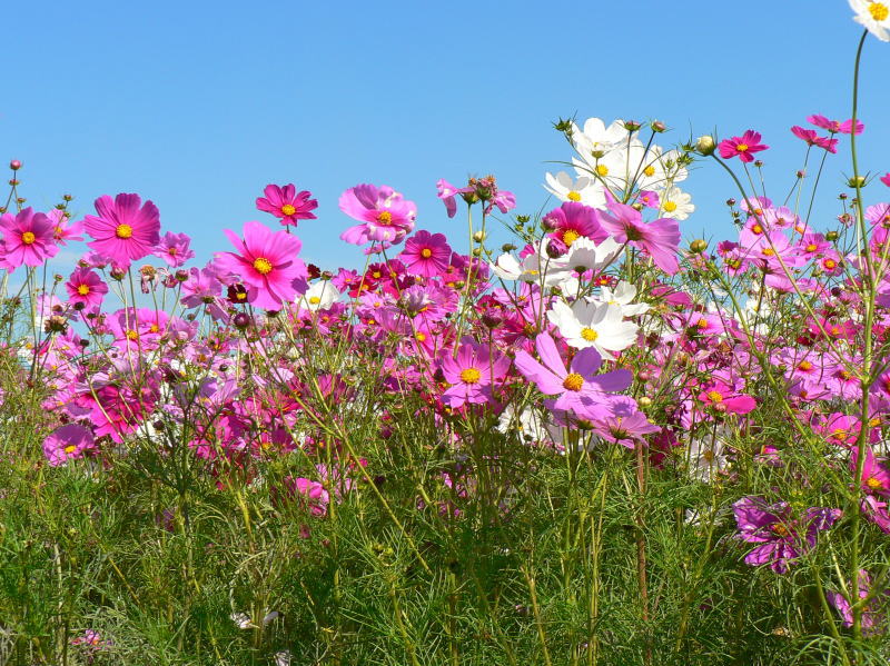 秋になるとさわやかな風に揺れるコスモスに心癒されます。