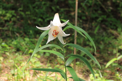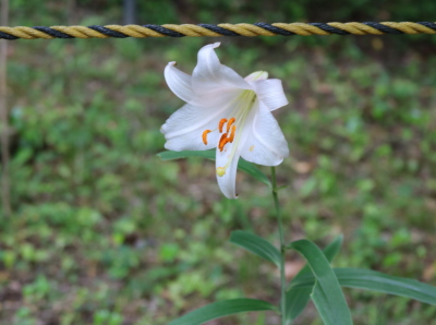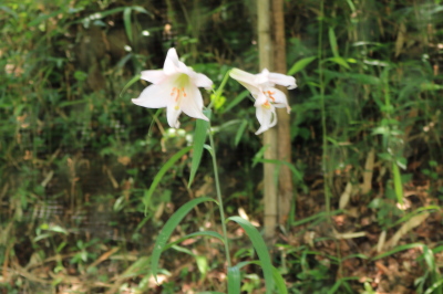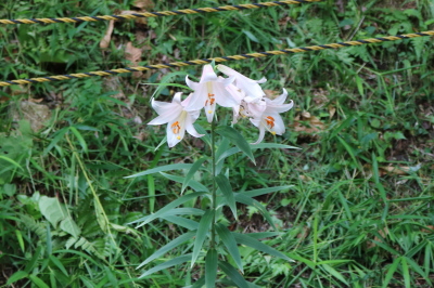 平成27年3月に地内唯一の自生地から球根を移植して同年5月に定植が成功したことを確認し、同年6月中旬には開花にも成功して一同喜びも一入でした。