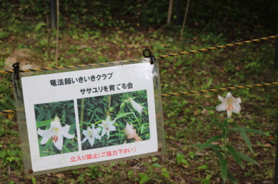 発足は、平成25年(2013年)8月で、「甲賀市の花」と指名されているササユリが、昭和30年代半ばまで毎年 6月中旬には咲き誇り竜法師地区の里山の原風景だったのに「現在は、その姿を殆ど見ることがない、何とか復元せねばならない」との熱い思いを持つ者12名でスタートしました。